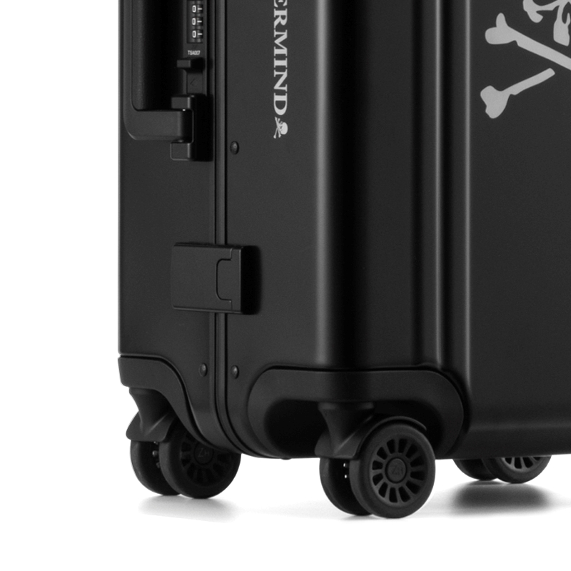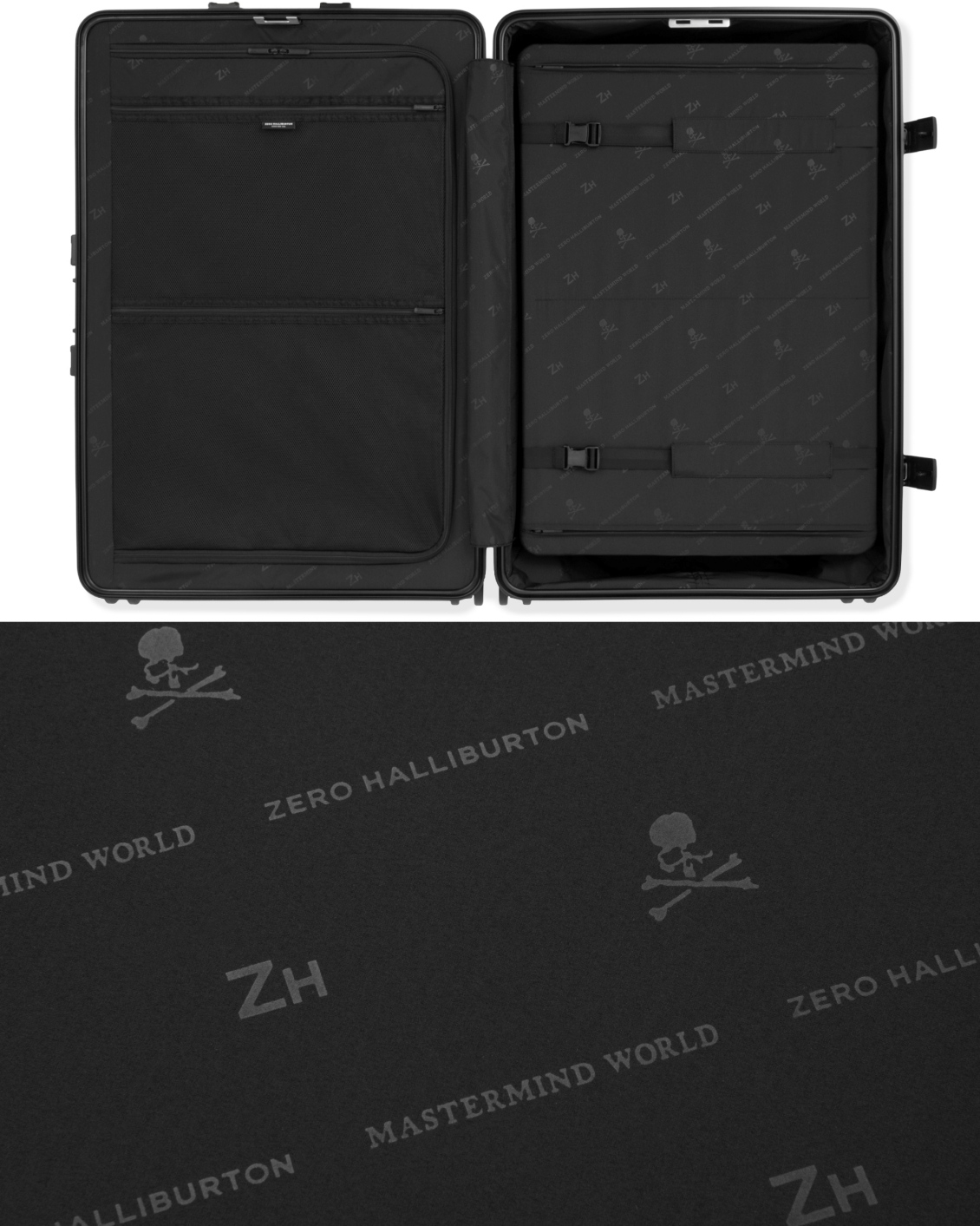 漆黒のボディにレーザー刻印された"スカル"と"MASTERMIND" のロゴが、独創的な世界観を演出します。内装やラゲージタグには、「ゼロハリバートン」と「マスターマインド」のダブルロゴを配し、細部までアイコニックなディティールを施しました。