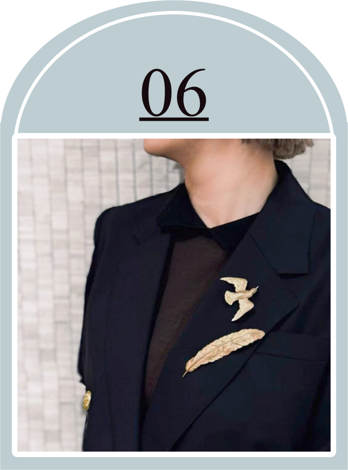 温かみのある真鍮素材のブローチ。 真鍮を立体的に型押しした作りのため、素材に負担がかかりにくく、薄い素材やニットにも使用できるのも嬉しいポイント。 スタイリングのアクセントとして、ジャケットの襟元、ニットやストール等、様々なアイテムに。