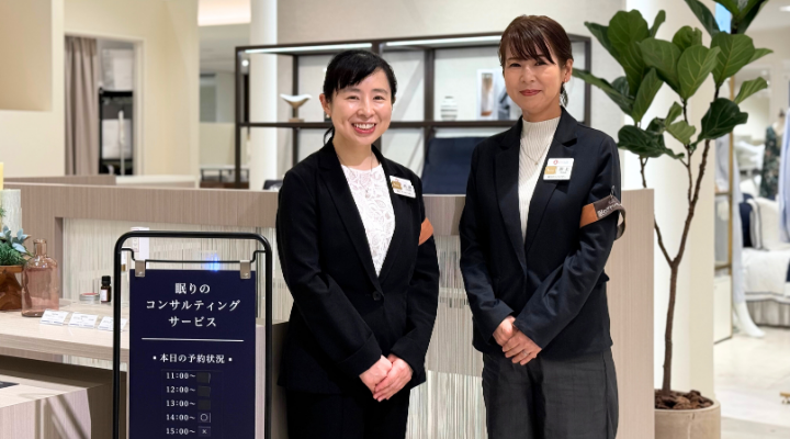*『眠りアドバイザー』とは、株式会社阪急阪神百貨店の社内資格であり、専門の研修を受けたうえで、筆記試験と実技試験に合格したスタッフに与えられる称号です。