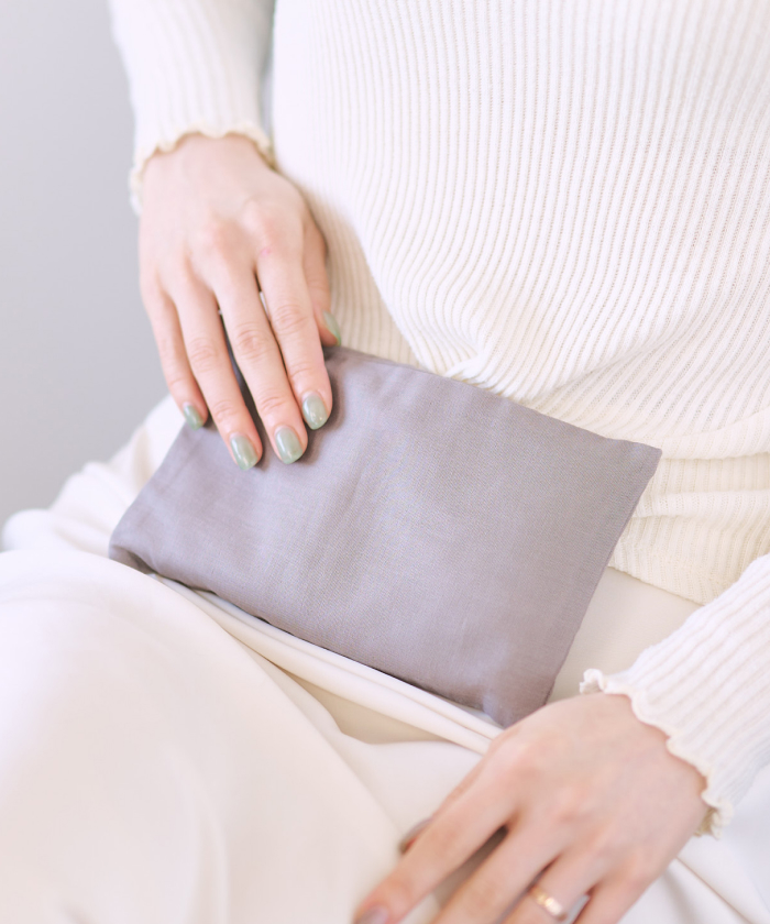 M:入眠時のアイテムはこの“玄米カイロ”が本当におすすめです!レンジでたった1分温めるだけで、玄米に含まれる水分が蒸気となって出てきます。お腹や腰に乗せると、まるでお家で「よもぎ蒸し」をしているような、芯からじわ〜っと潤いながら温まる感覚になれるんです。 身体の先まで温めて、副交感神経をオンにした状態で入眠をすると、質のよい睡眠がとれますよ。