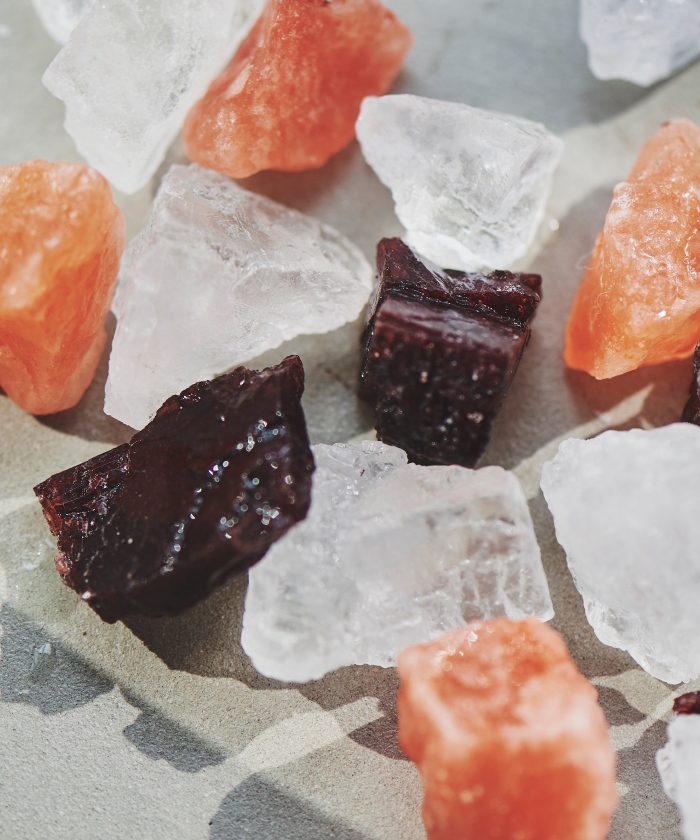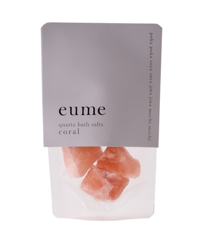 M:新生活のコンディショニングをととのえるには、睡眠の質をいかに上げるかが大事になりますよね。まずはお風呂で体温をしっかり上げて、緩めてあげることが最優先です。 そこでおすすめになのが“クォーツバスソルト”。3億年前のヒマラヤ岩塩なんですが、浄化をイメージするクリスタルや、鉄を含んだコーラルなど、気分によって選んでいただけます。