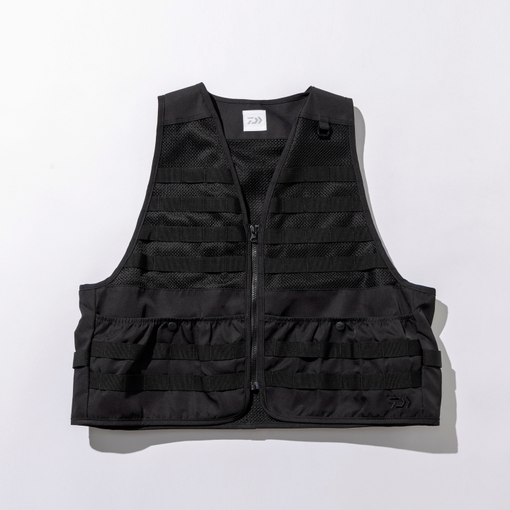 DAIWAのテクノロジー「コンビアップシステム」に対応したベスト。単品使用に加え、DR-3126JEXと一体化することで、重ね着時のズレを大幅に軽減します。ベストの厚みを正面から両サイドへ分散させ、足元の視界を確保し、アウトドアでの安全性を向上。高密度に織り上げた、頑強かつしなやかなツイル素材に撥水加工を施しています。別売りのモバイルポーチやラージポケットとの連結も可能です。