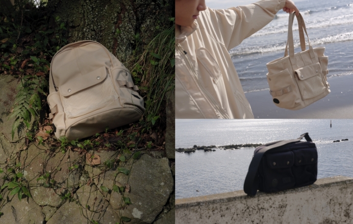当コラボレーション第3弾では、普段使いからアウトドアまで対応するデイパック、トートバッグ、ショルダーバッグを販売いたします。コットンライクな撥水加工した帆布を使用し、ルアーケース対応ポケットやデイジーチェーンなど高い機能性を備えた実用的なデザインにも注目です。