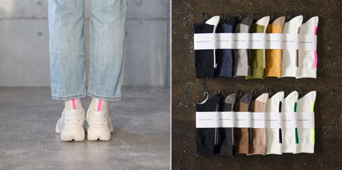 日本一の靴下の生産地である奈良県の小さな町工場で編まれる「HARUSAKU」の靴下。