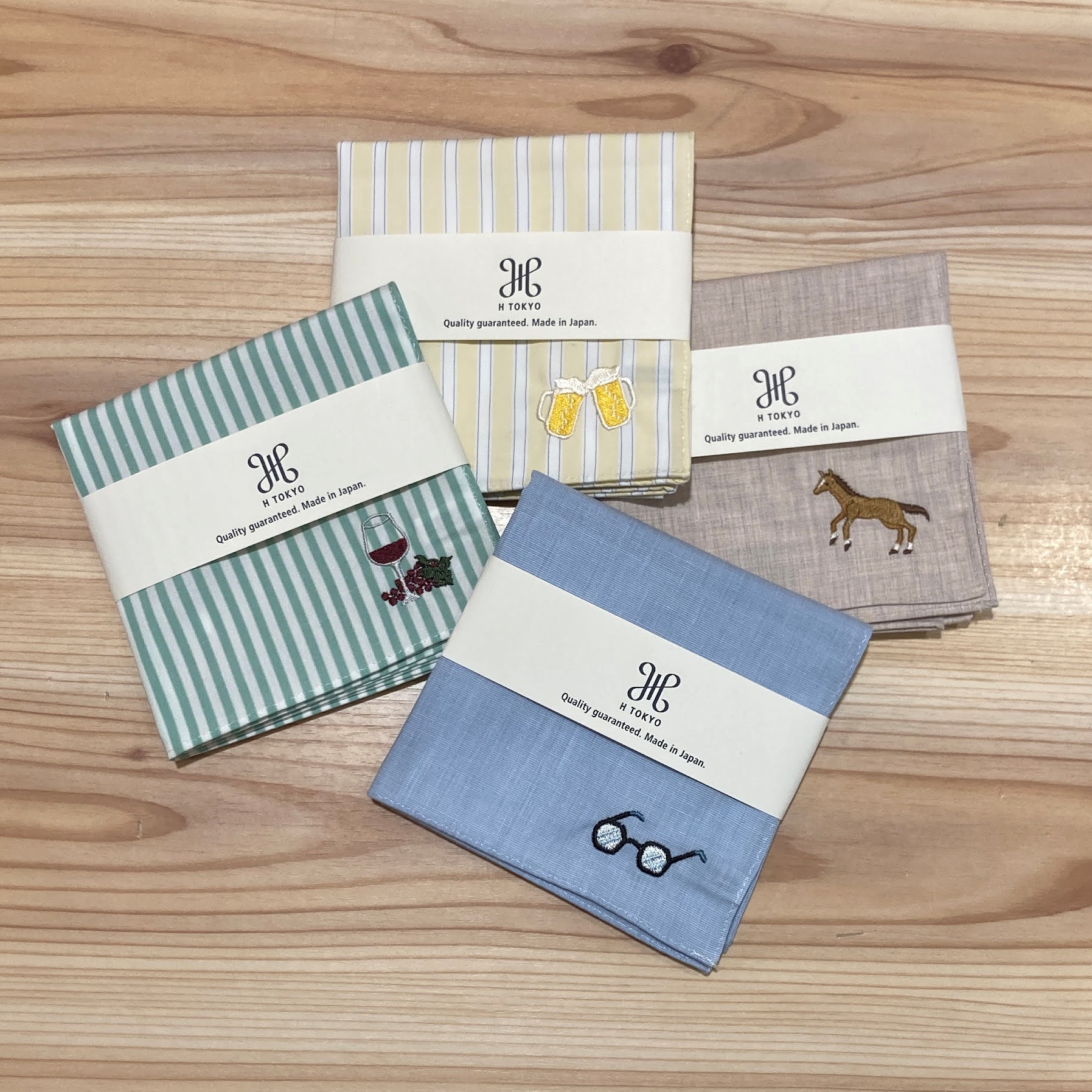 お酒好き、メガネ愛好家、午年生まれの方など、ワンポイントのオリジナル刺繍が、使うたびに気持ちを盛り上げてくれます。