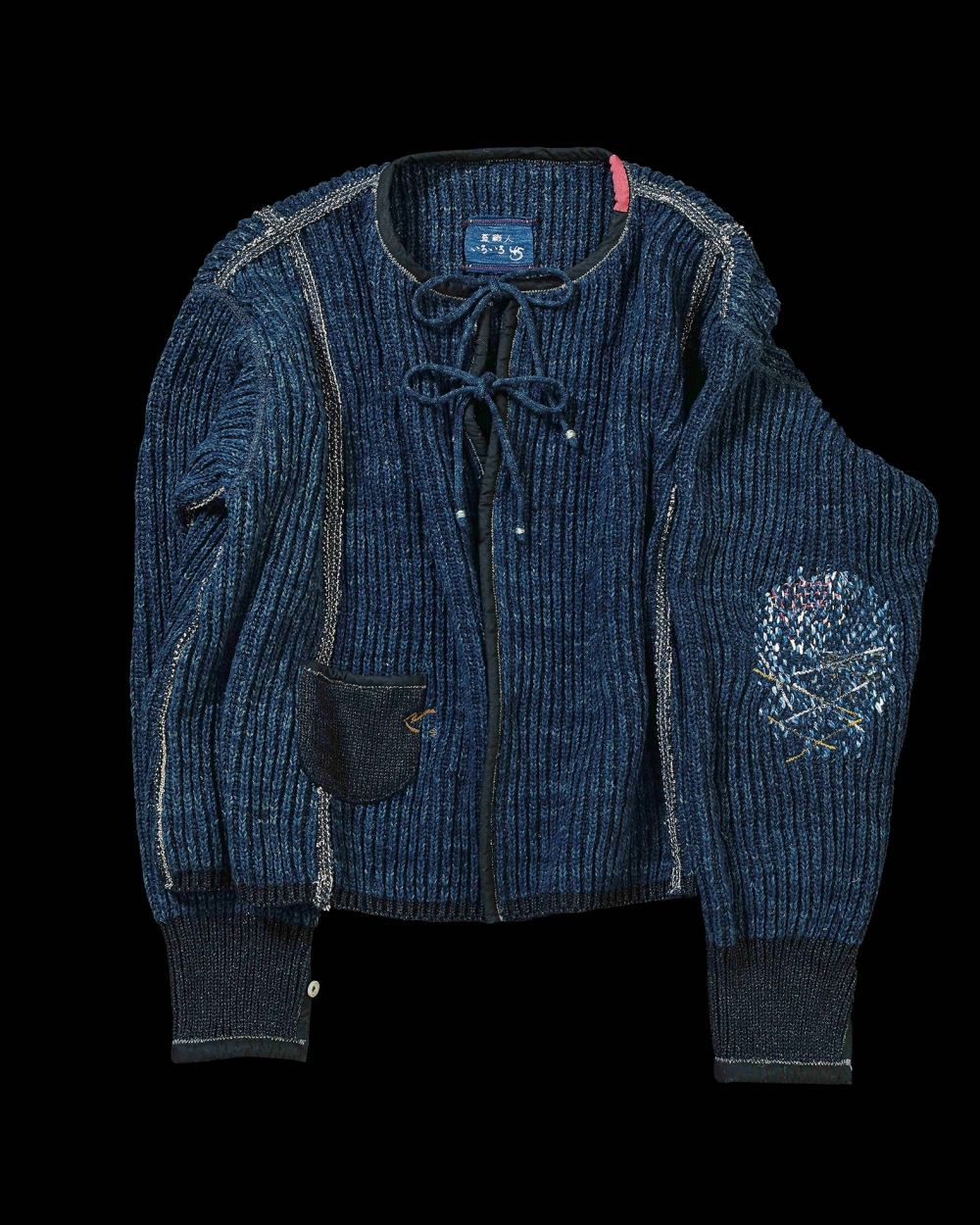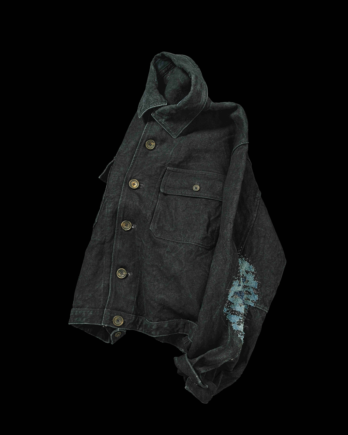 肘には刺し子を施し、藍の美しさと、野良着の佇まいが重なった一着です。