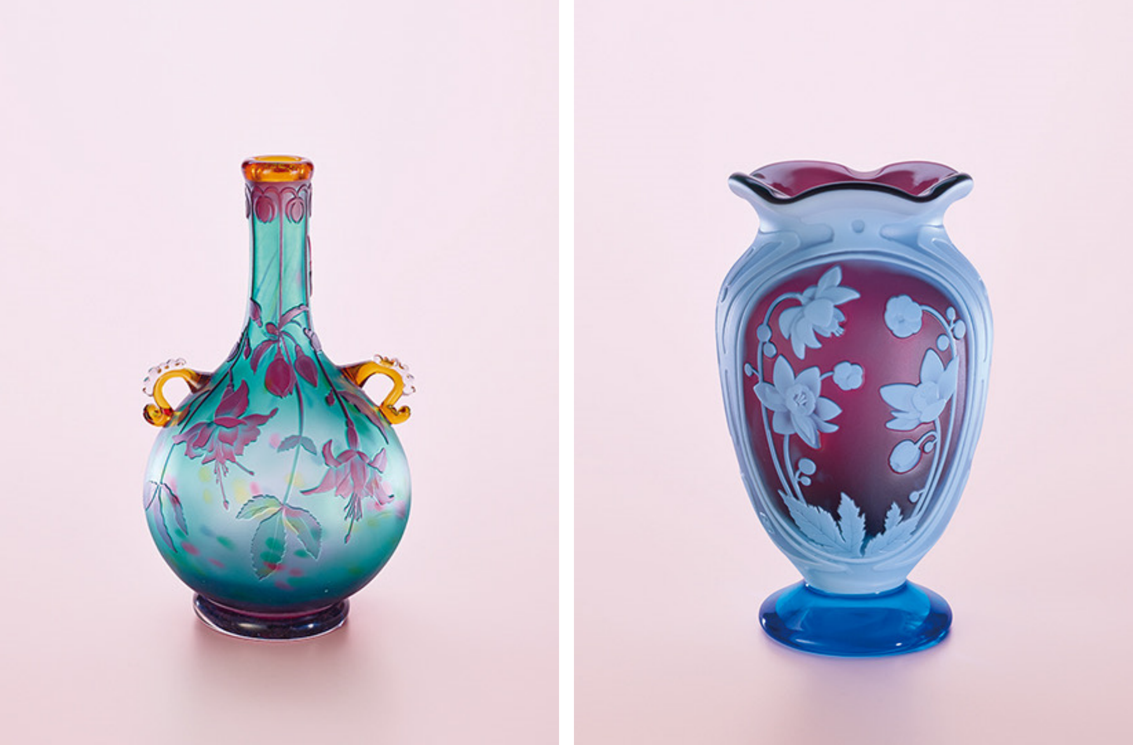 画像左)山田えい子「ミュシャの風」 径12.5×高21.5cm