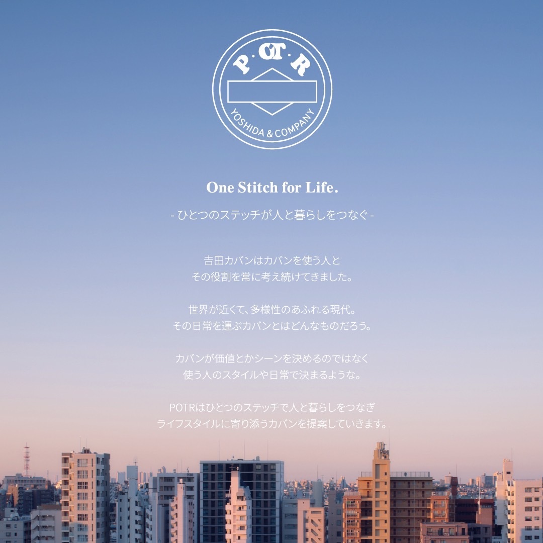 POTRは、「One stitch for Life. -ひとつのステッチが人と暮らしをつなぐ-」をコンセプトに、田カバンの長年にわたるモノづくりの経験をいかした、さまざまなライフスタイルに寄り添うプロダクトを展開するブランドです。