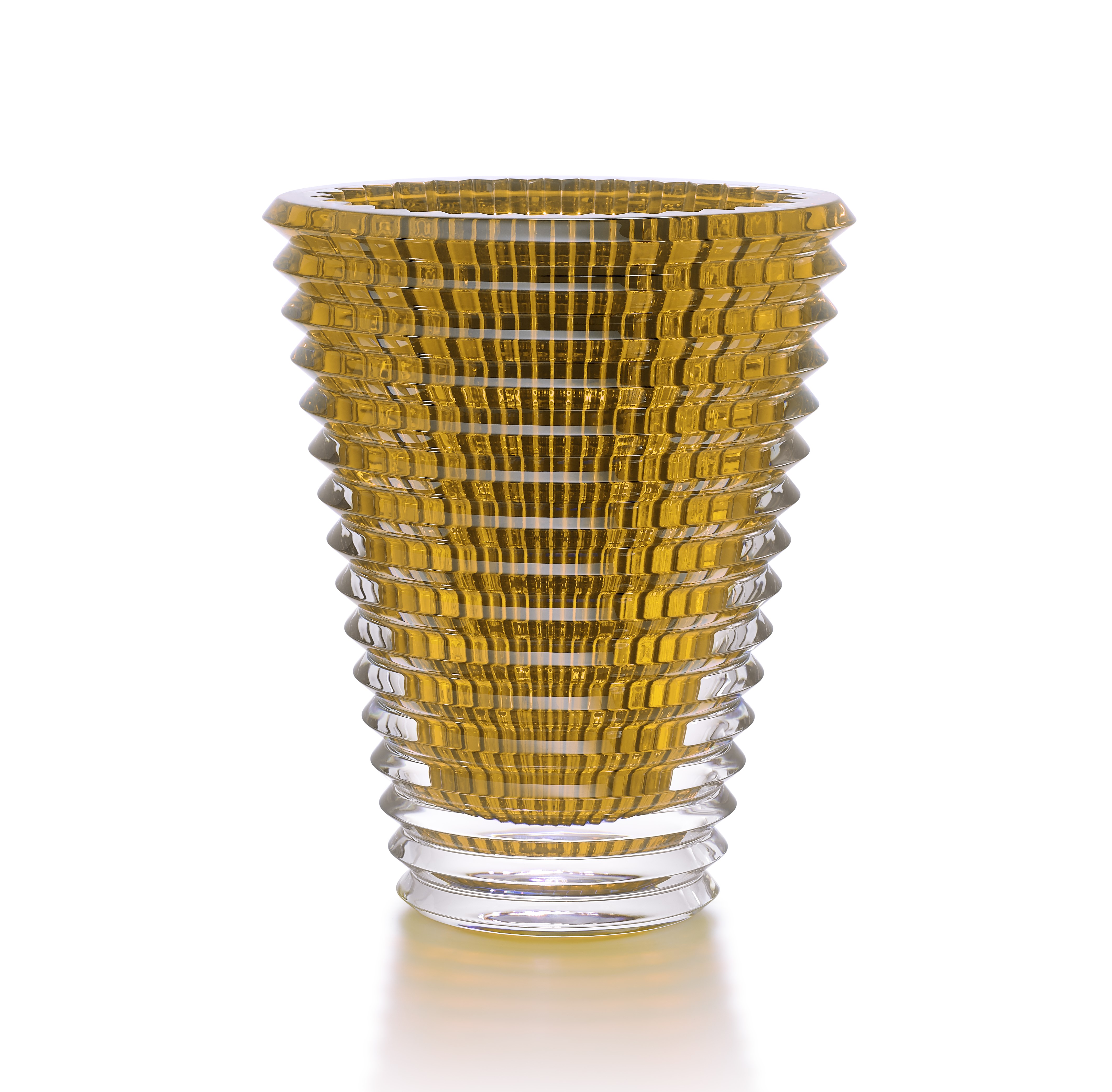 内側の垂直方向の凹凸と外側の水平方向の凹凸が視覚上で重なって、独特の模様が浮かび上がり、その効果がまさにドラゴンフライ・アイ(トンボの複眼)を思わせるところから、「アイ」と名付けられました。下から上に向かって広がるシェイプは遠近法の表現を思わせ、ダイナミックな現代建築のような趣です。カラーはすべて*ラッカージュによるカラーリング。美しい発色は、モダンで明るい表情です。植物とのコーディネーションを楽しむのはもちろんのこと、そのままでもモダンアートのようにインテリアのアクセントとなります。
