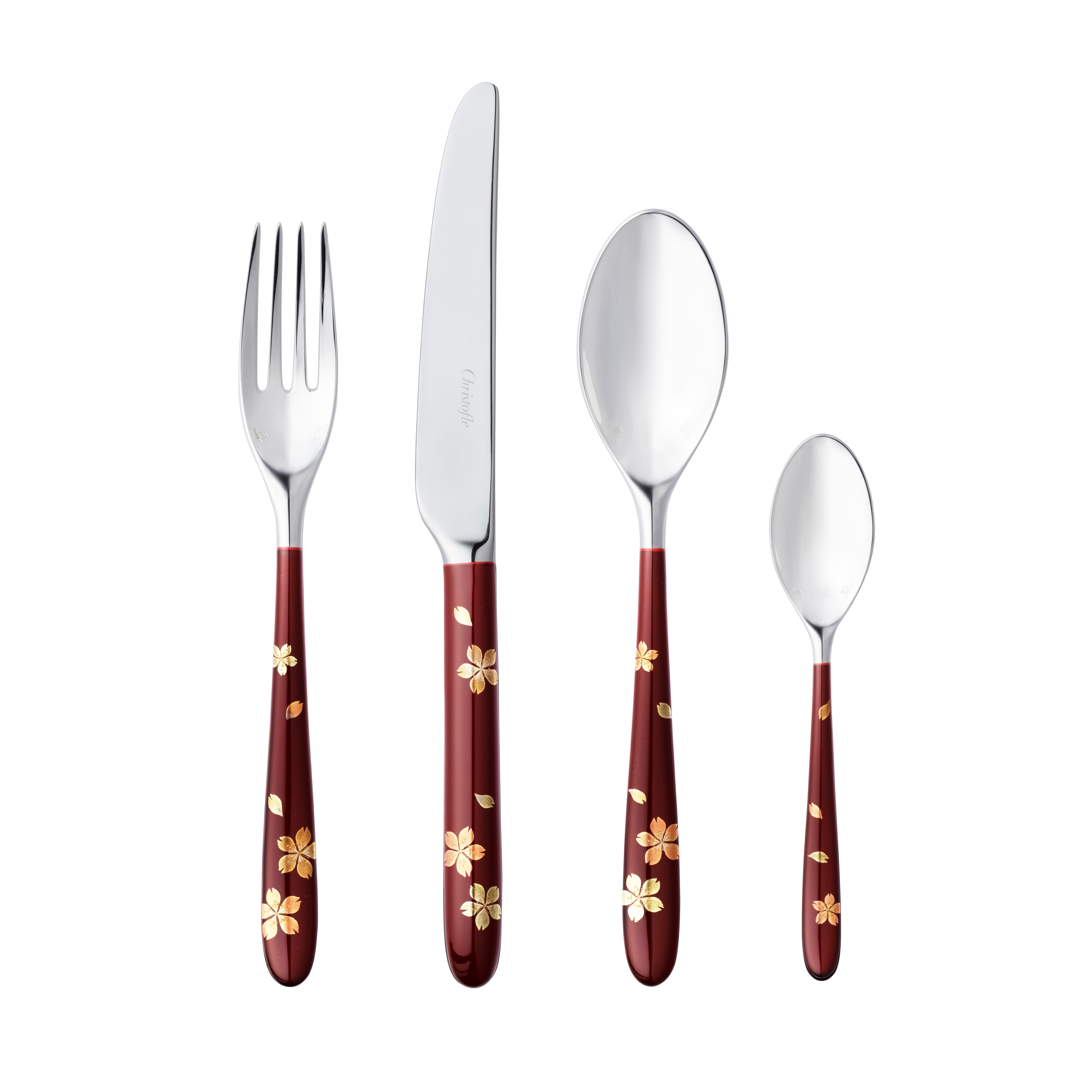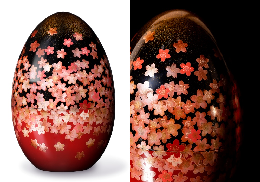 輪島の漆工芸である、蒔絵の第一人者箱瀬淳一とコラボレートし、クリストフルを代表するアイコニックなカトラリーセットのケースとカトラリーに吉野の桜を金、銀、漆を使い蒔絵として描いた、最上級のアート作品です。