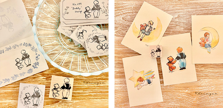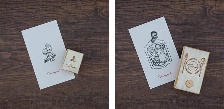 包装紙やカード、スタンプなど線画のイラストの文房具をご用意します。