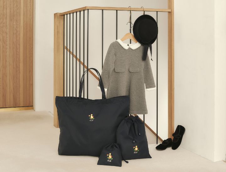ランドセルだけでなく、学校行事にも役立つ“学校フェイラー”新アイテムも登場。ネイビーを基調とした落ち着いたトーンは、上質でエレガントな装いにも馴染みます。
