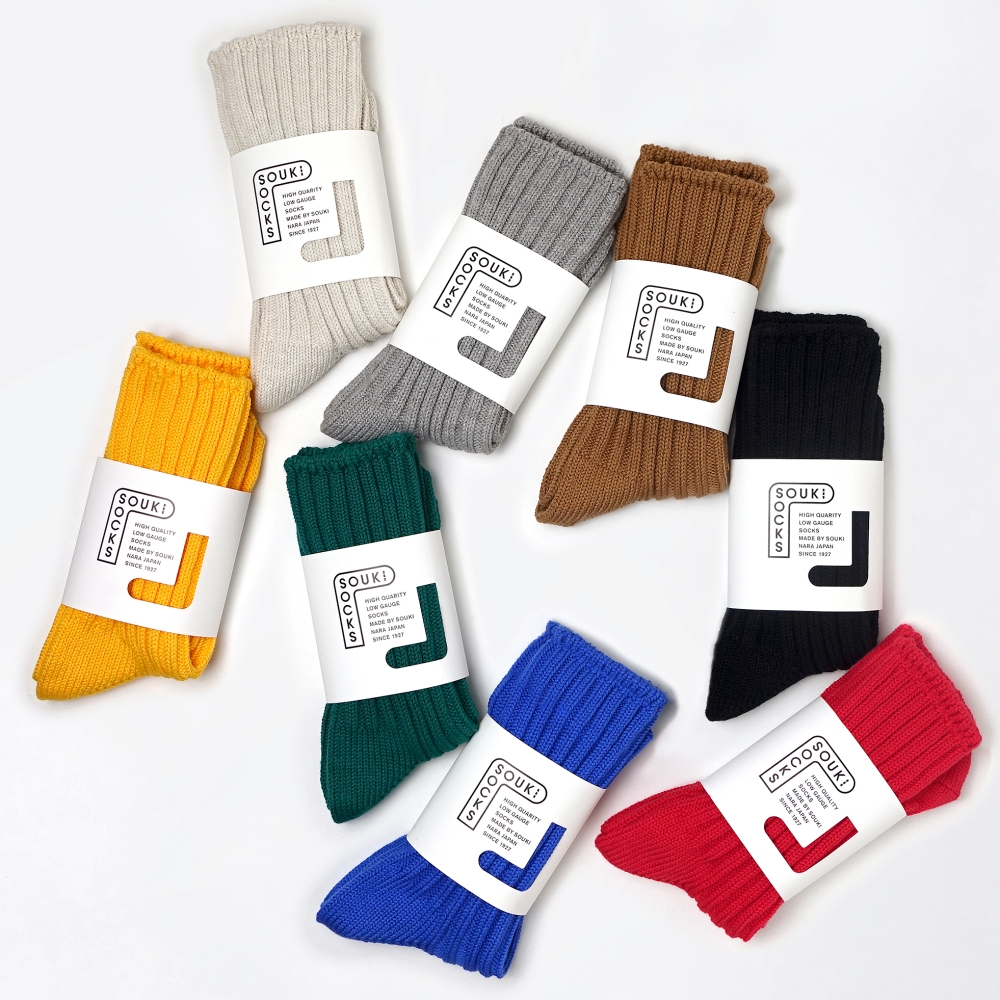 創業から100年の歴史を持つSOUKIのファクトリーブランド「SOUKI SOCKS」「ReLoop」のローゲージソックスの履き心地をぜひお試しください。