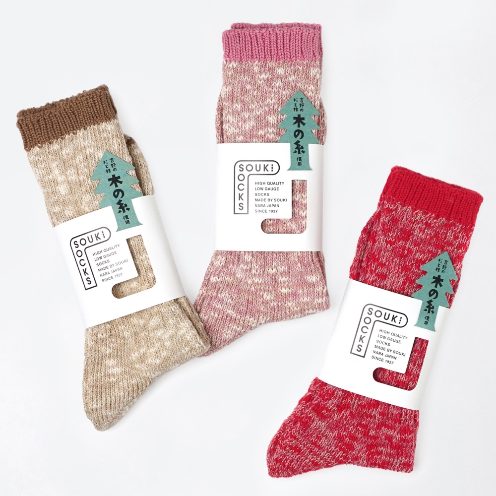 SOUKIが代々受け継いできた稀少なローゲージの編機と技術、そして品質の良い天然素材をたっぷりと使った靴下。