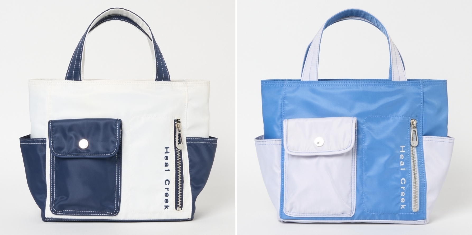 クラシックなトートバッグのデザインをベースに、洗練された配色がモダンな印象を与えます。