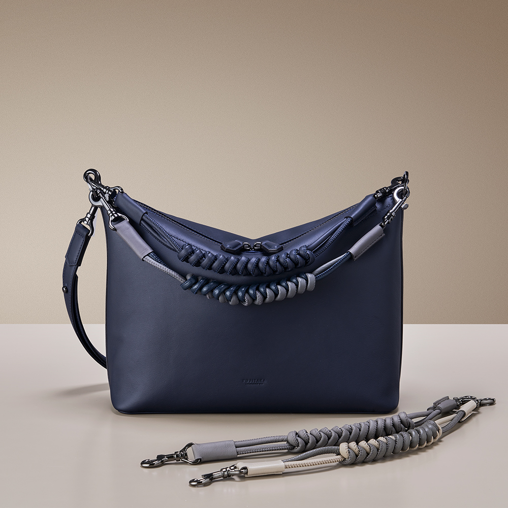 今回のイベントで登場する新作「トレッソ」シリーズは、特徴的な編み込みハンドルと、内容量によって形状が変化する機能とデザインが両立したショルダーバッグです。
