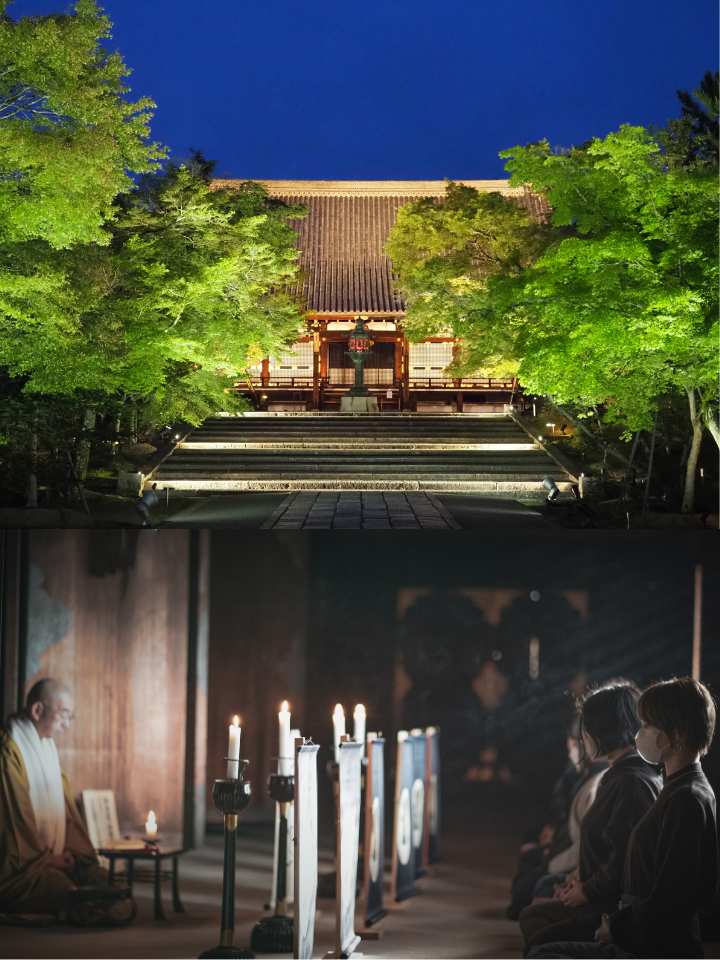 国宝での阿字観(数息観)体験と青もみじライトアップ