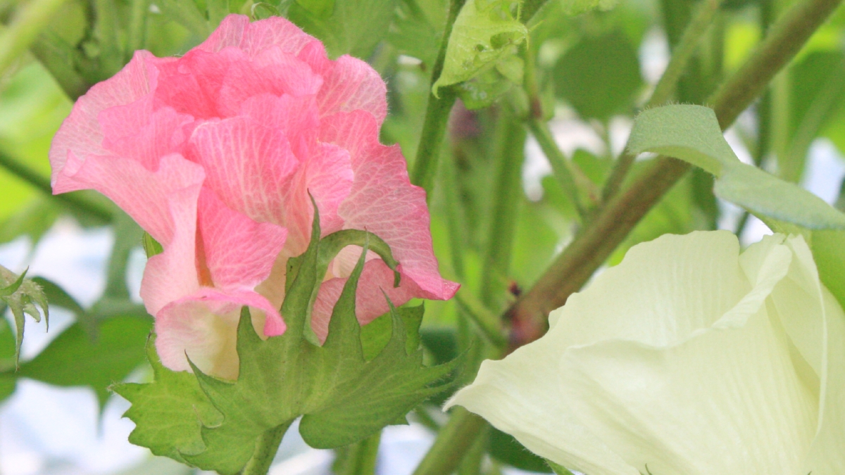 コットンの象徴である白い綿(わた)が生まれる前に、わずか一日だけ咲き誇る“綿の花”があります。朝には淡い黄色で目覚め、夕暮れには愛らしい赤紫色へと色を変えて静かに散っていきます。