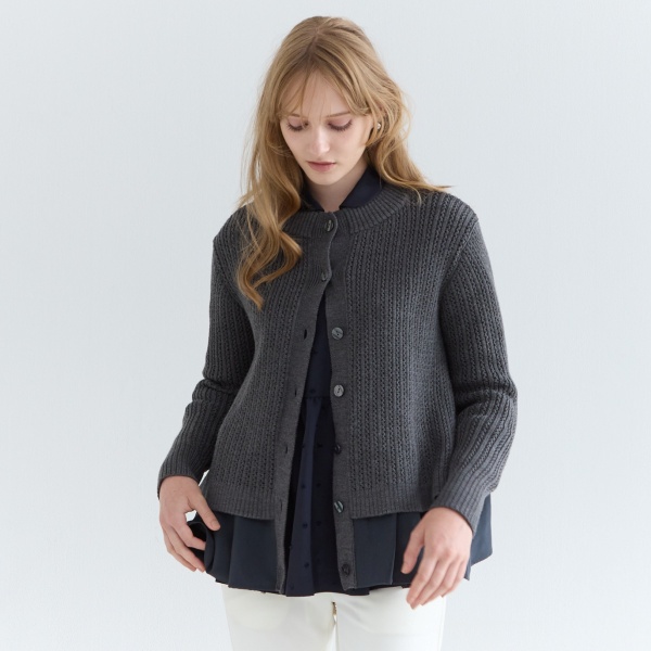 ふんわりとした裾の切替が女性らしい印象のカーディガン。Aラインなので体型を拾わずおしゃれにスタイリングできます。