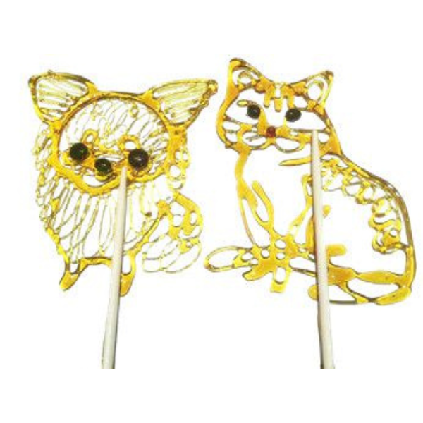 長く飾って楽しんでいただける、べっこう飴による飴細工。人気アニメキャラクター、似顔絵や動物など、お客様のご要望に応えてお作りいたします。