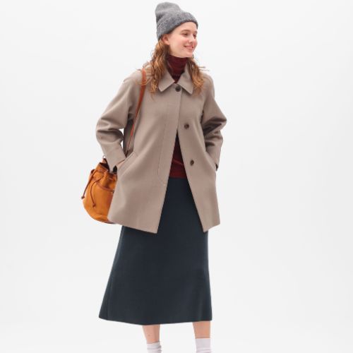 上質なウールコートをミドル丈にアレンジし、ベーシックながらも程よくゆとりあるAラインシルエットです。小物使いでカジュアルなスタイリングでもキレイめスタイリングでも色々なコーディネ―トが楽しめます。