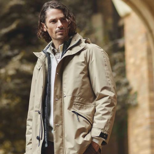 冬の都会で過ごすメランジ調のコート。撥水・防風・透湿性を備えた機能素材「McG TECHNO」を使用しています。