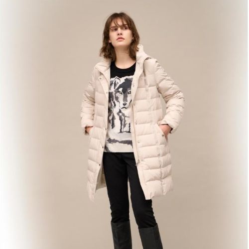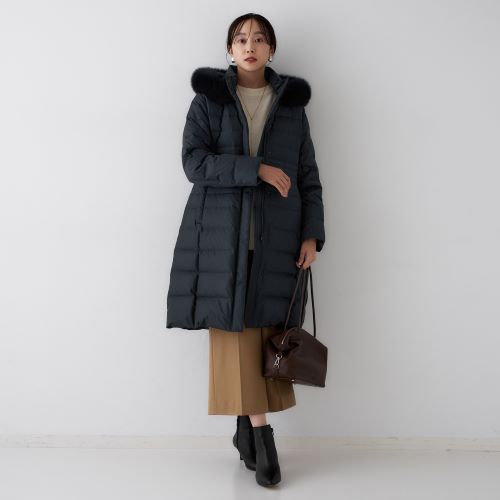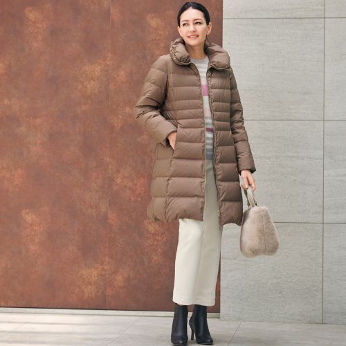 ロング丈ダウンコートは、ポーランドダウンを使用した贅沢なコート。