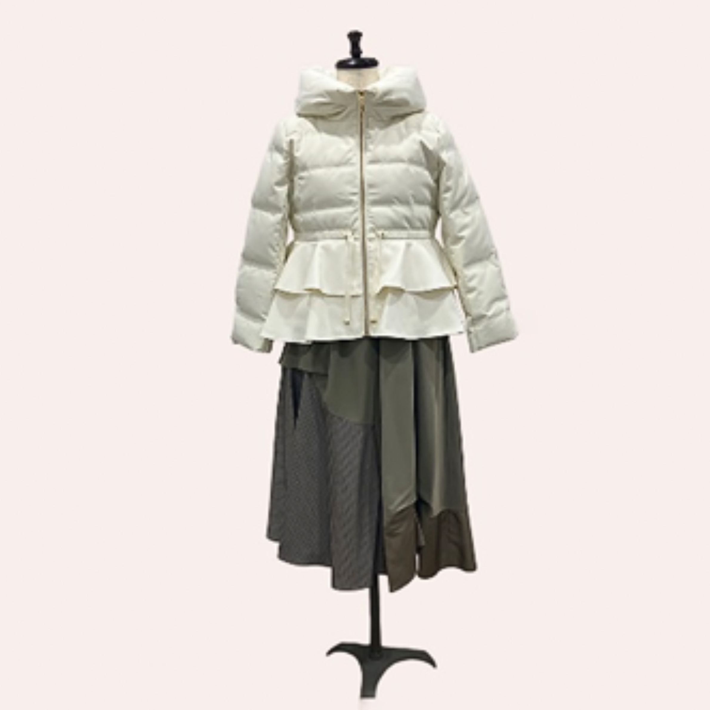 トレンドのペプラムデザインが女性らしいダウンジャケット。ふんわり衿が顔周りを華やかにしつつ小顔効果も期待できます。着ぶくれしないスッキリしたシルエットで、