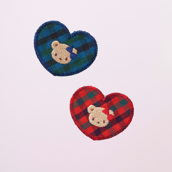 髪の毛が少なめのあかちゃんにも付けやすい面ファスナーの髪飾り。ファミリアチェックを使用したハート型のデザインです。