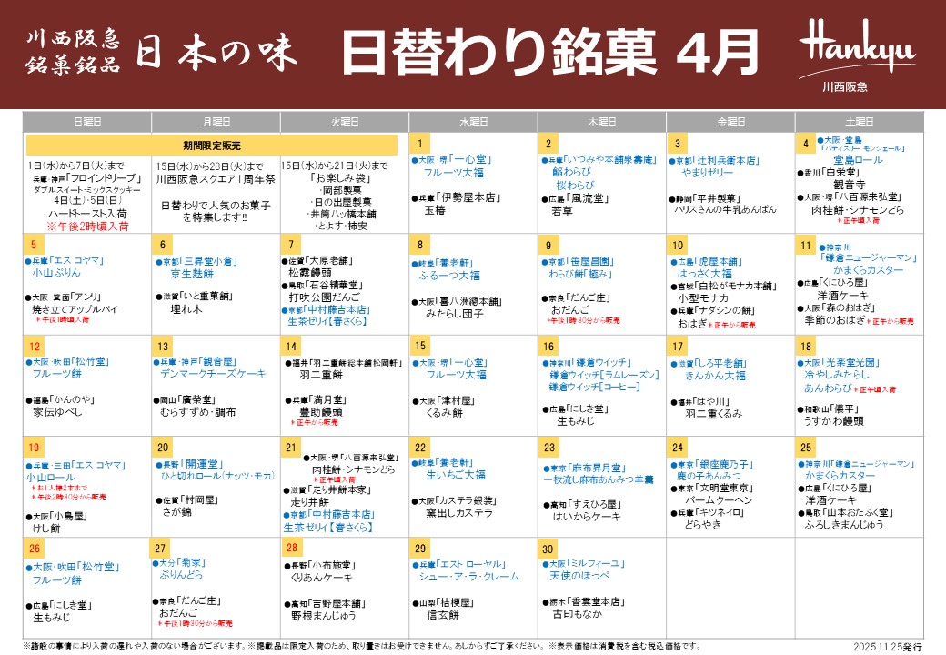 今週の日替わり銘菓