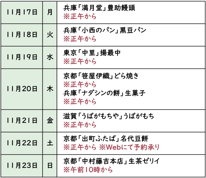 "あのお店はいつ?"、"神戸阪急へ行くこの日は何?"など、気になるお菓子をどうぞお見逃しなく。