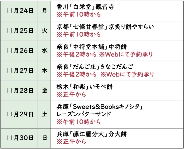 11月27日(木)・28日(金)は兵庫「ナダシンの餅」の販売はございません。 |