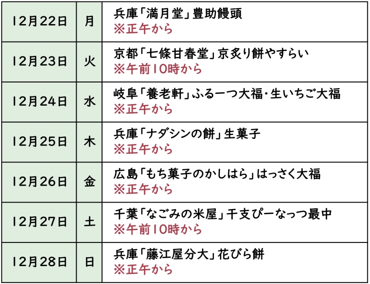 12月26日(金)は兵庫「ナダシンの餅」の販売はございません。 |