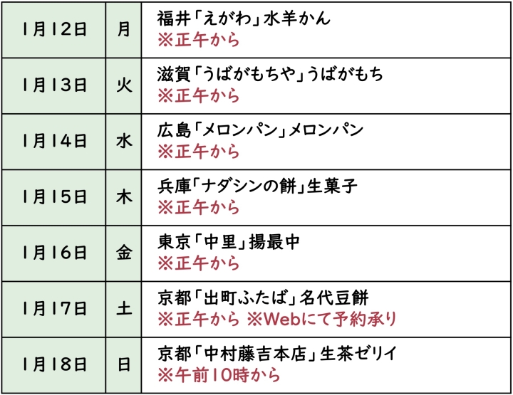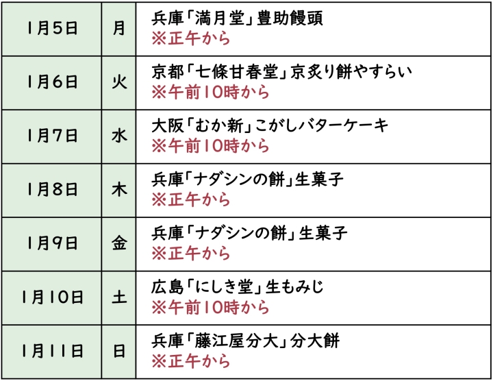 1月16日(金)は兵庫「ナダシンの餅」の販売はございません。 |