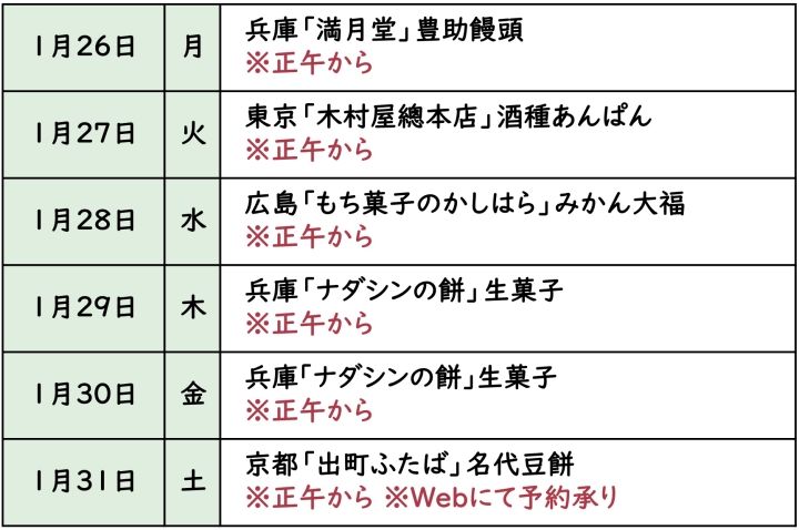 1月23日(金)は兵庫「ナダシンの餅」の販売はございません。 |