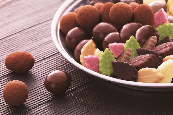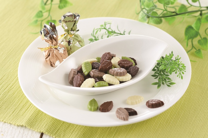 カラフルな包みを開けると、木の葉の形をしたチョコレートが7粒入っています。