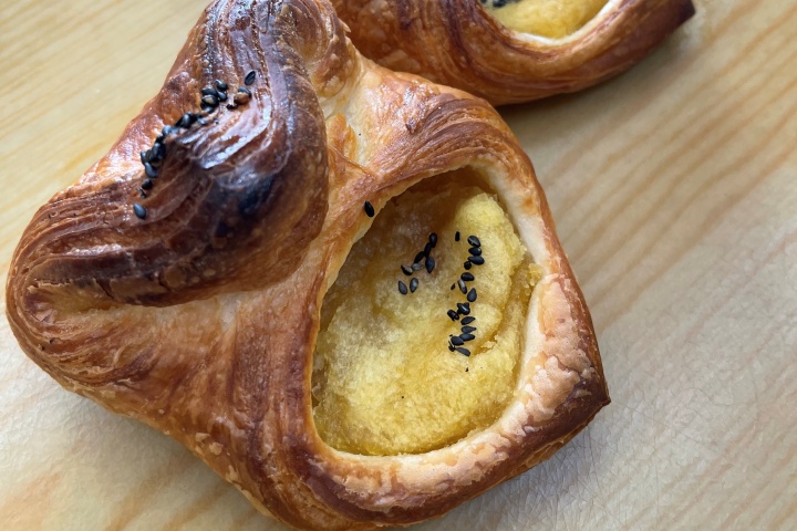 デニッシュ生地にスィートポテトをサンドし焼きあげました。