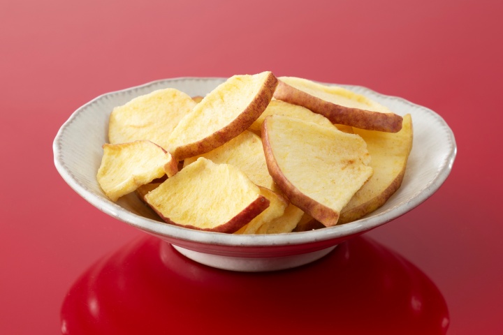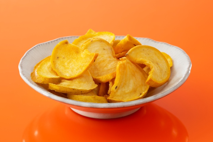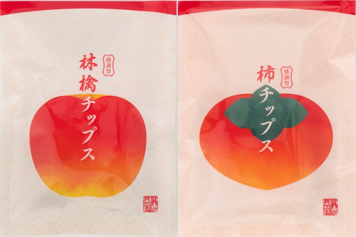 今年収穫の国産果実"林檎"と"柿"を厚切りチップスにしました。