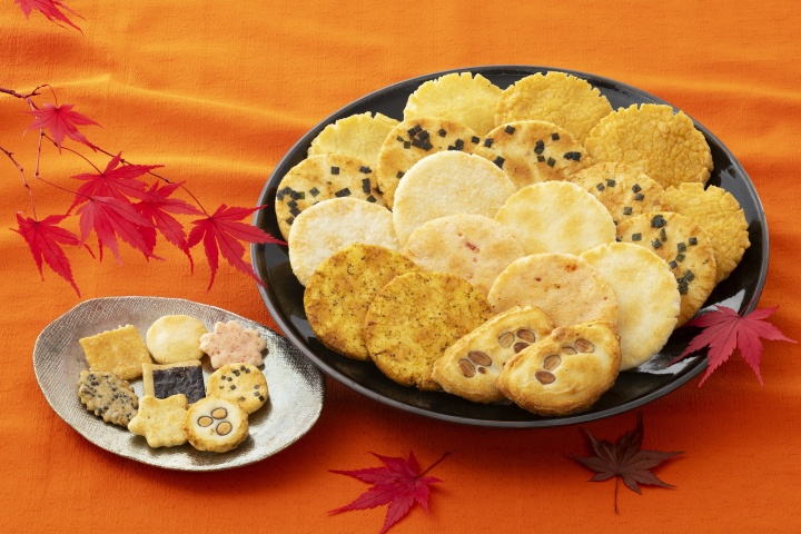 京都の人気おせんべい専門店「小倉山荘」から、日頃の感謝の気持ちを込めて、様々な種類の無撰別せんべいをご用意。