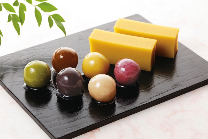 あんこ玉は抹茶、小豆、白いんげん豆、珈琲、みかん、いちごの6つの味を取り揃えています。