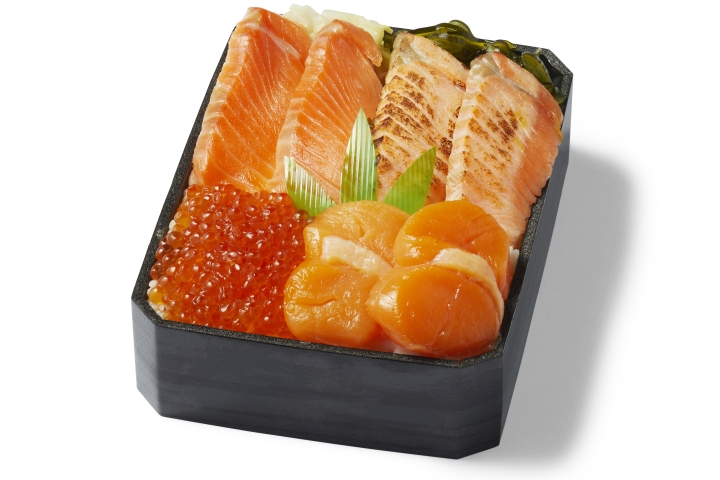 縁起のよい赤玉ホタテ、秋鮭、イクラ。