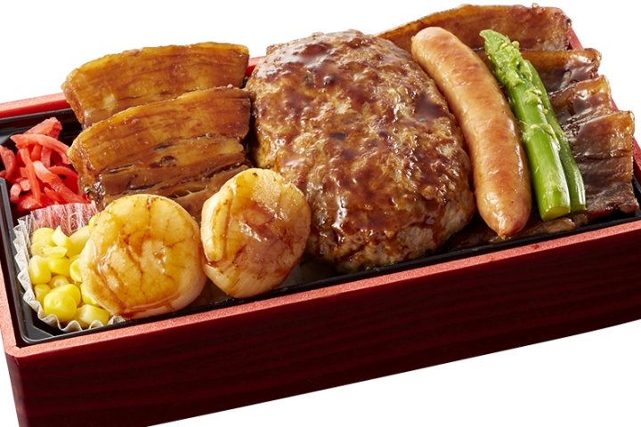 十勝産かみこみ豚の網焼き肉やハンバーグ、トロトロ角煮、さらにホタテ貝柱までど~んと。