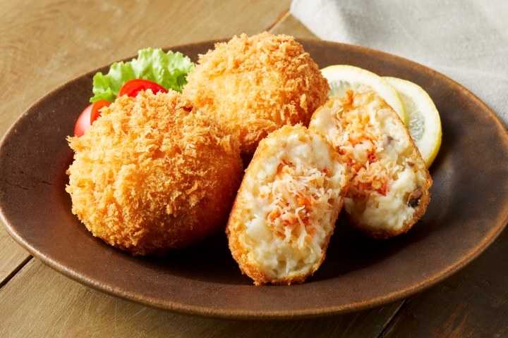 甘みのあるじゃがいも"北海こがね"とタラバガニの贅沢クリームコロッケ。
