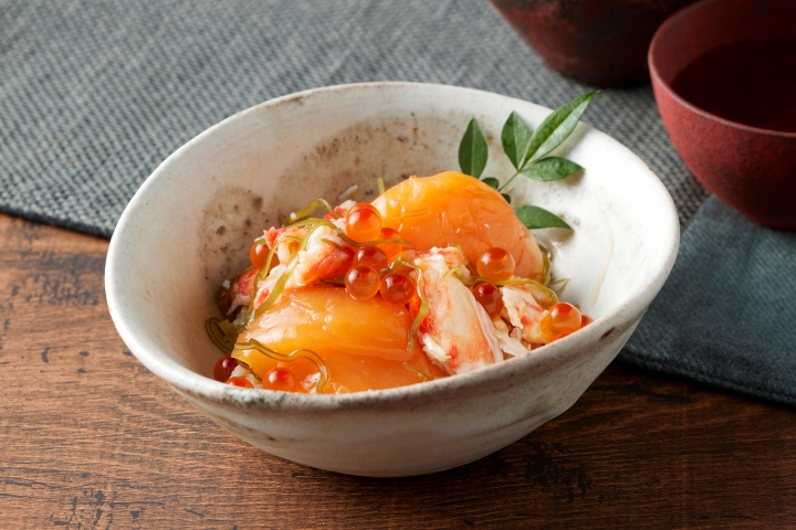 北海道産タラバガニの棒肉や爪肉などを盛りに盛って。