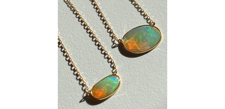 オパールの遊色を楽しんでいただけるカットを施したネックレス。