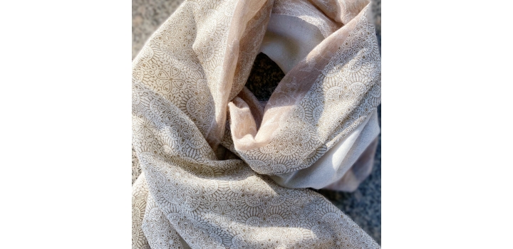 インド文化と日本の伝統工芸の美意識を融合させ、一枚布の絹織物に物語を描くブランド。