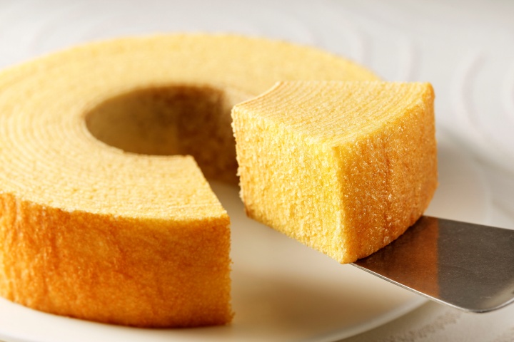 たっぷりの卵で焼きあげたバームクーヘンは、まるでカステラのよう。