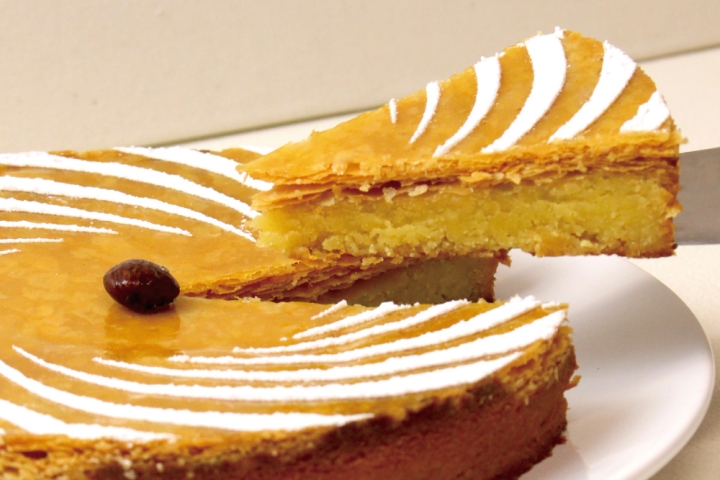 アーモンドがひとつ入ったガレット・デ・ロワを8つにカットし、お召し上がりいただきます。