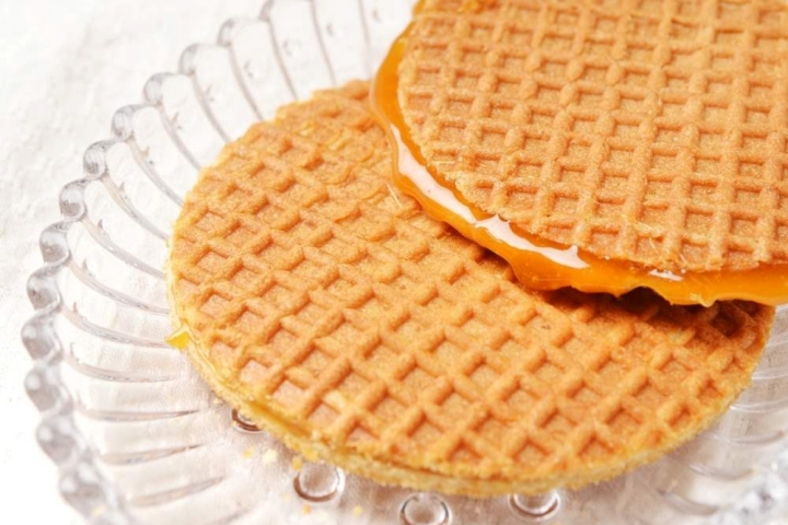 薄く焼いたワーフル生地に特製のキャラメルをはさんだユニークな食感のお菓子。