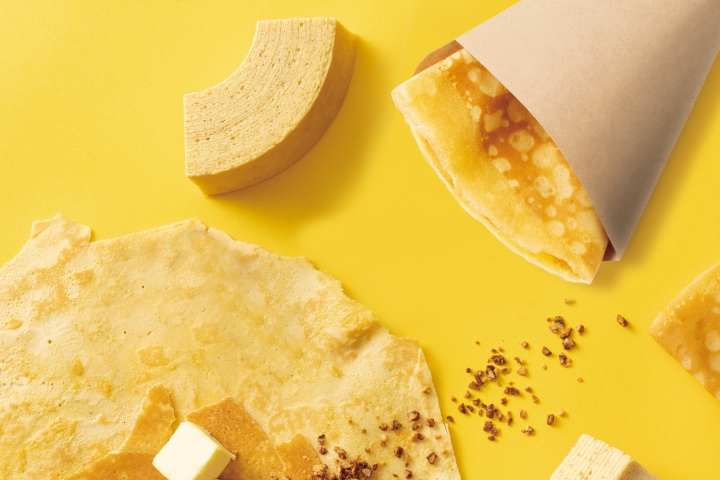 バウムクーヘンの生地で仕上げたもっちり食感のクレープ。